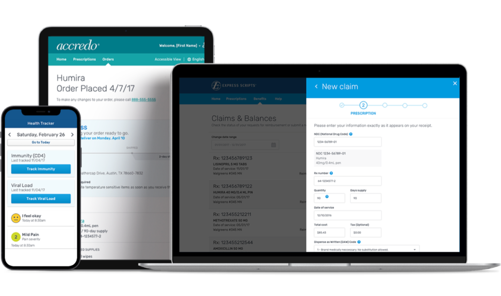 - Responsive web and native mobile (iOS & Android) applications – used by Express Scripts members and Accredo patients to manage their prescriptions, adherence, and symptom tracking